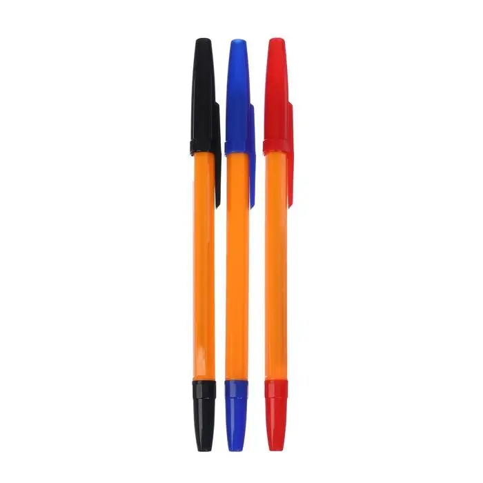 Набор ручек шариковых 3 цвета, стержень 0,7 мм, синий, красный, чёрный, корпус оранжевый