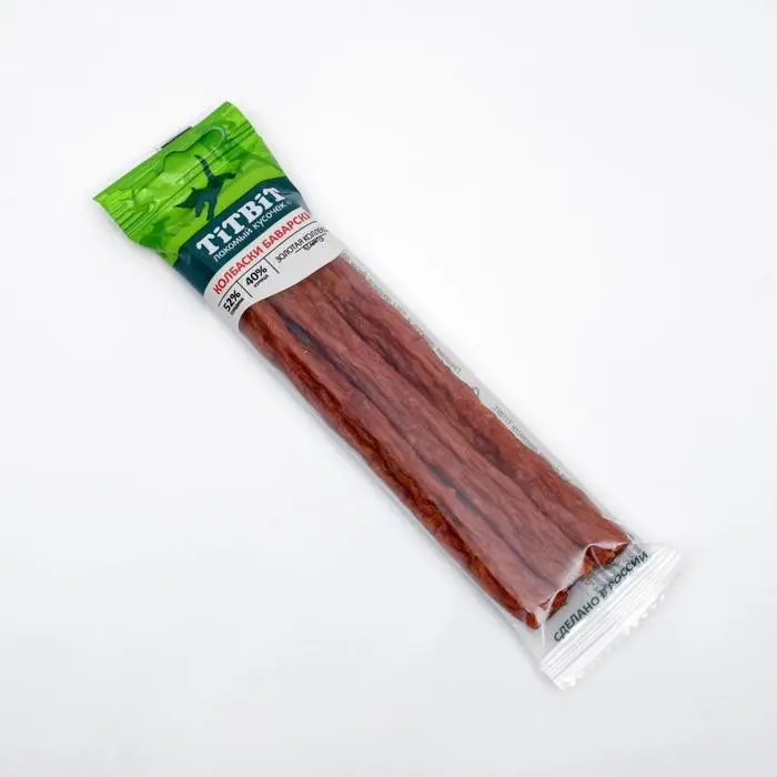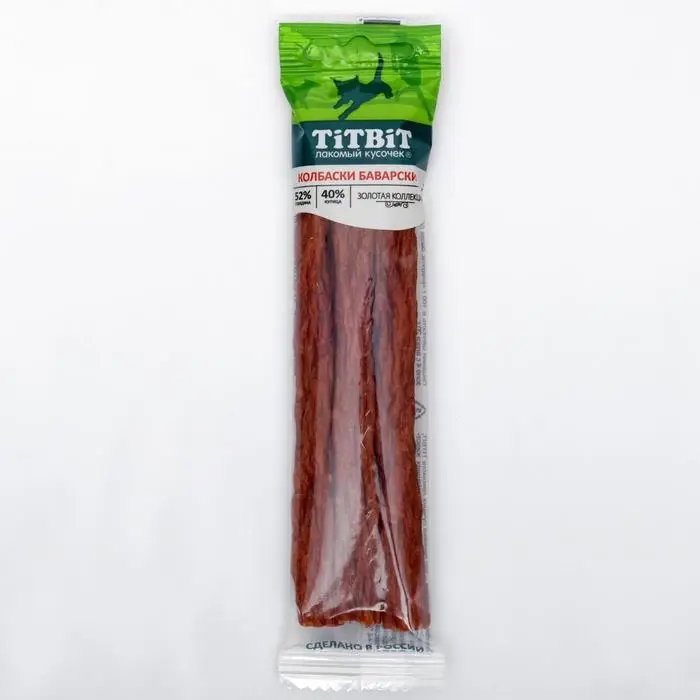 Золотая коллекция – это линейка лучших лакомств TITBIT, разработанных при участии владельцев домашних животных и их питомцев. Колбаски «Баварские» приготовлены из отборной говядины и куриного филе и дополнены щепоткой тмина и майорана, придающих изысканность нежному вкусу.
