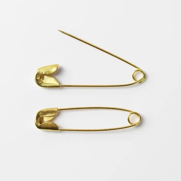 Английская булавка — универсальный помощник в быту, при шитье и рукоделии. Она пригодится для закалывания материала, драпировки ткани, создания украшений. С ней вы можете прикрепить к одежде или домашнему текстилю мягкие аксессуары. Острый край булавки прячется в безопасную петельку, она не уколет и прослужит вам долго.