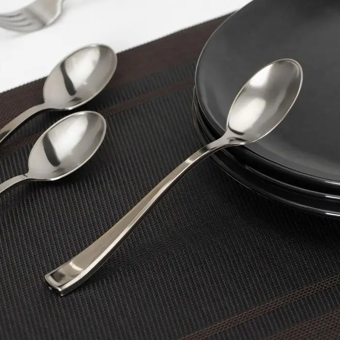 Ложка одноразовая, пластик,17.5 см, столовая, серебристая