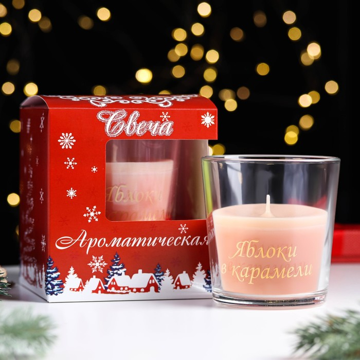 Свеча в стакане ароматическая "Яблоки в карамели", 6,5х8 см, бежевый