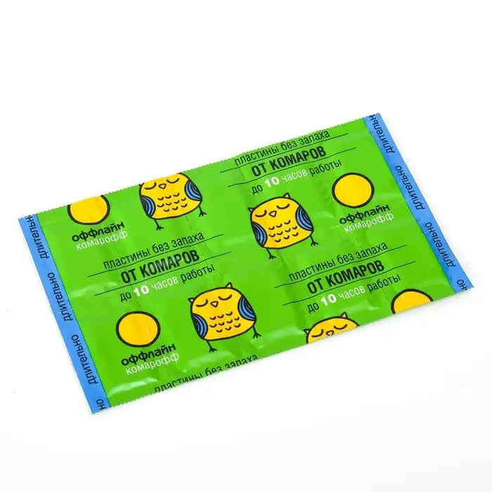 Назначение: для уничтожения комаров и других летающих насекомых (москитов, мошек) в помещениях населением в быту.Способ применения: вынуть из упаковки картонную пластину, вложить в электроприбор и включить его в электросеть с напряжением 220 В. Средство начинает действовать через 5-10 минут после включения, полное уничтожение насекомых достигается примерно за 1 час. При открытых окнах или форточках электроприбор с пластиной можно оставлять включенным на всю ночь для уничтожения насекомых, залетающих в помещение. После окончания работы электроприбор выключить, пластину сохранить до следующего использования. Одна пластина рассчитана на работу в течение 9 часов. Замену пластину следует проводить, отключив электроприбор от сети.Меры предосторожности: использовать средство только по назначению. Средство применять в отсутствии людей при закрытых окнах (форточках) с последующим проветриванием помещения не менее 30 минут; в присутствии людей использовать средство только при открытых окнах (форточках). Одну пластину использовать в помещении площадью 12-15 м2. Работающий электроприбор устанавливать в местах, недоступных детям, вне контакта с посторонними предметами обихода, на расстоянии не менее 1м от постоянного местонахождения человека. Не использовать средство в помещении, в котором находятся дети. Не касаться рукой или металлическим предметом нагревательной поверхности, не допускать попадания воды, избегать попадания на пластину прямых солнечных лучей. Не накрывать нагреватель во время работы посторонними предметами. После контакта с пластиной вымыть руки водой с мылом. Выключать нагреватель из розетки, когда он не используется. При появлении признаков дискомфортного состояния прекратить использование средства, прибор выключить из розетки, помещение проветрить в течение 30 минут. При появлении неприятных ощущений во рту прополоскать 2% раствором пищевой соды.Хранение: хранить при температуре от -20°С до +30°С, в упаковке, в местах, недоступных детям, отдельно от пищевых продуктов. Использовать средство только по назначению. Использованные пластины выбросить в места сбора мусора. Состав: трансфлутрин (3 мг/ пластину), праллетрин (9 мг/ пластину), краситель, антиоксидант, растворитель, картонная основа.Срок годности, гарантийный срок хранения: 5 лет.