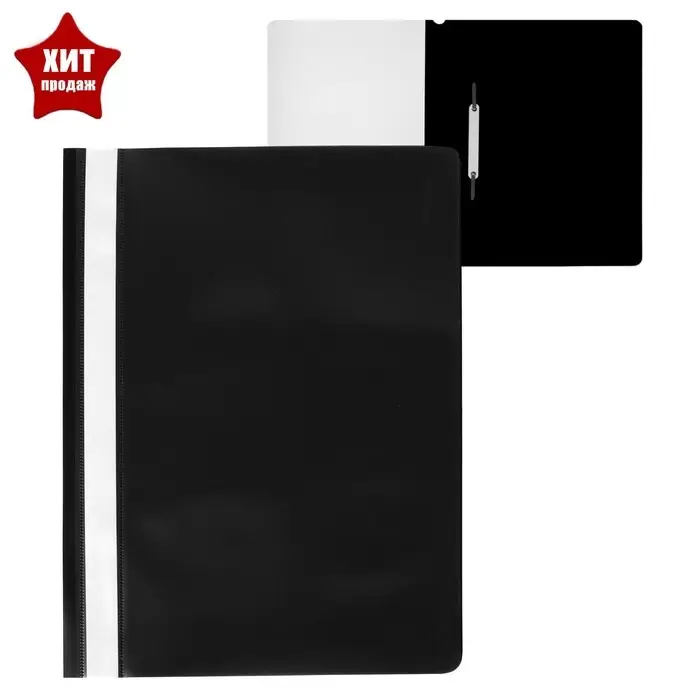 Папка-скоросшиватель Calligrata, А4, 120 мкм, чёрная, прозрачный верх
