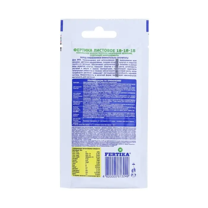 Полностью водорастворимое комплексное азотно-фосфорно-калийное удобрение, содержащее микроэлементы.