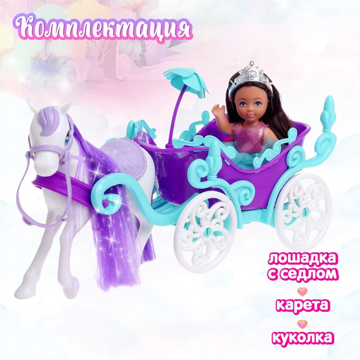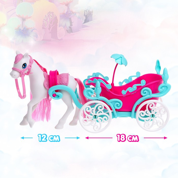 Каждая принцесса заслуживает свою карету! Особенно если это сказочный набор с запряжённой лошадкой! В таком транспорте можно отправиться на бал или даже в волшебное путешествие.