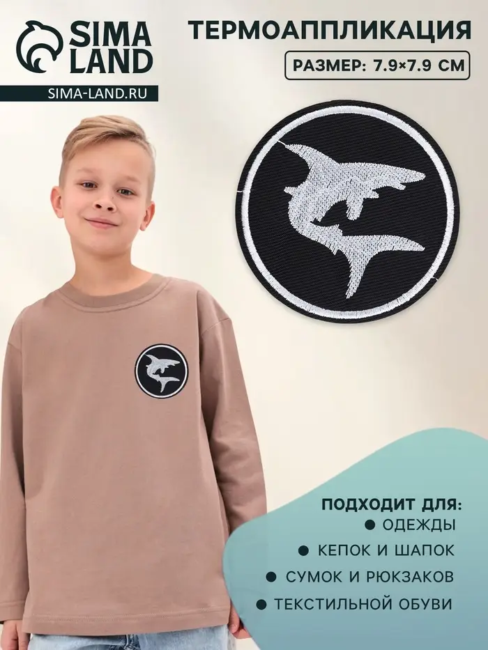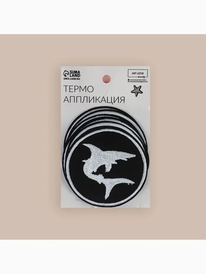 Термоаппликация «Акула», d=7.9 см, фасовка 10 шт., чёрная, белый