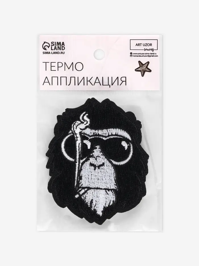 Термоаппликация «Обезьяна в очках», 9×7 см, чёрная