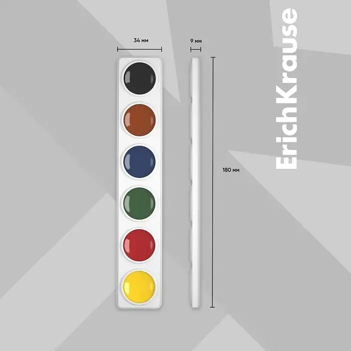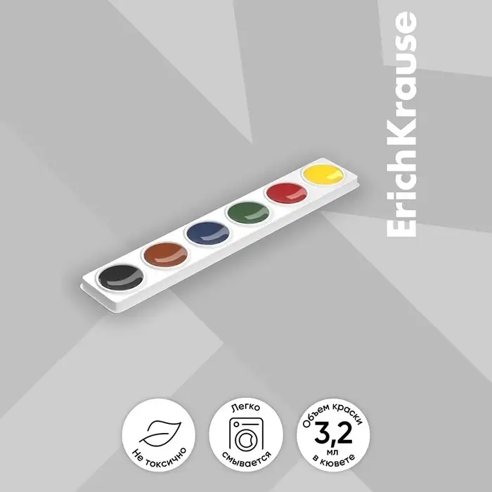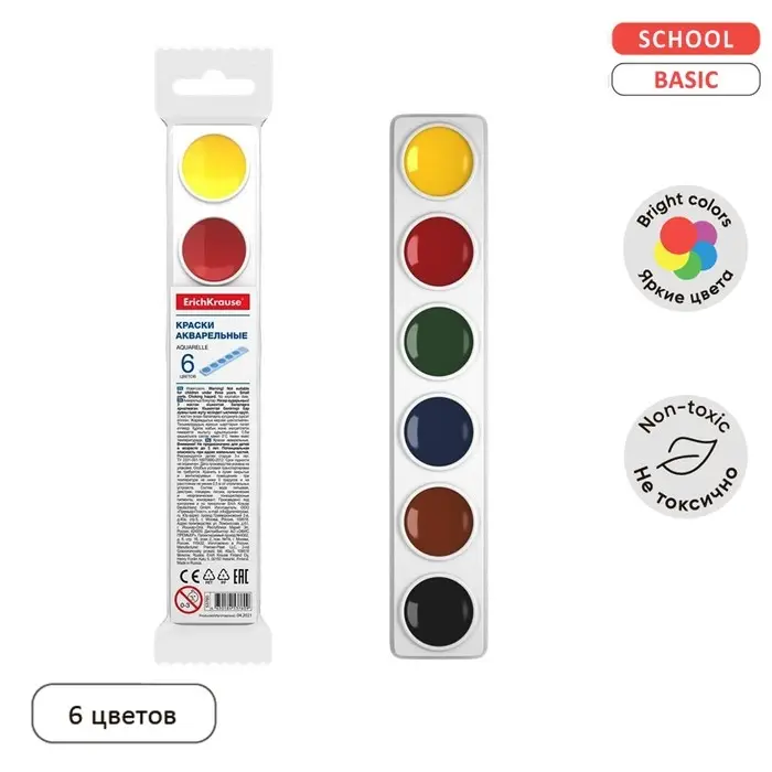 Акварель ErichKrause, 6 цветов, без кисти, мягкий пластик, экономичная упаковка, пакет с европодвесом