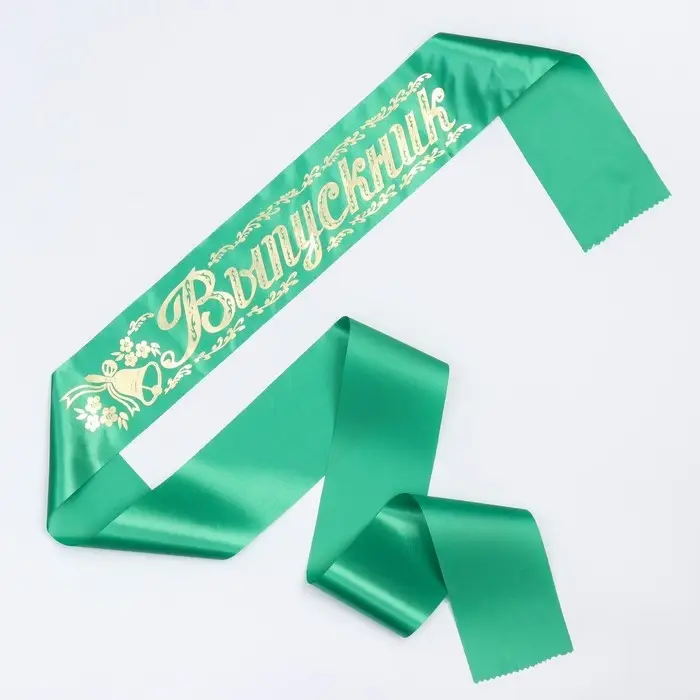 Лента на выпускной «Выпускник», атлас зелёный фольга
