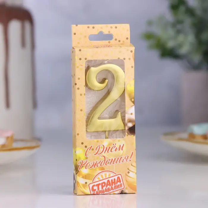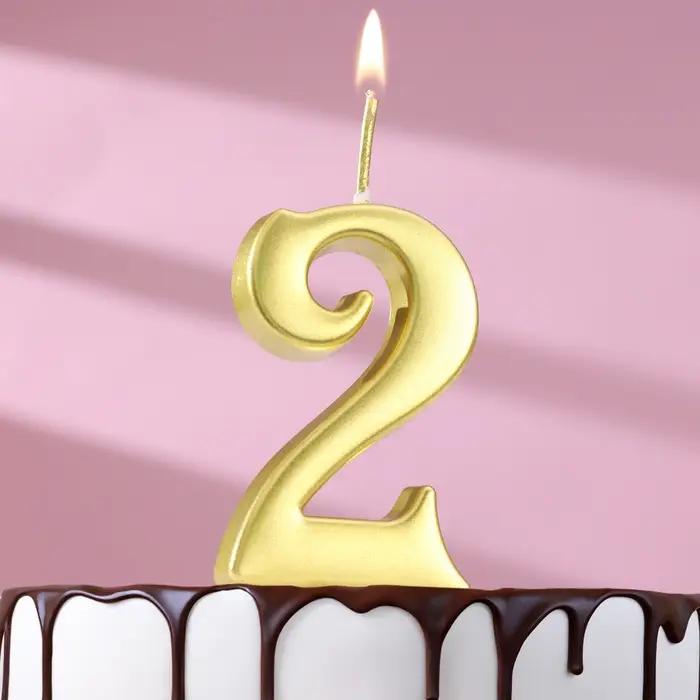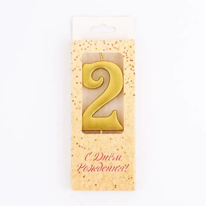 Свеча в торт «Цифра 2», 5.3 см, золотая