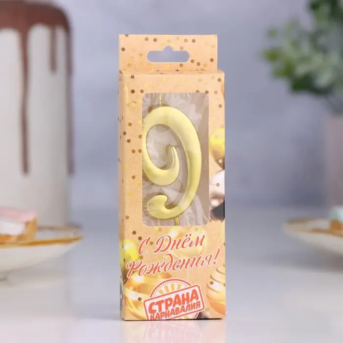 Свеча в торт «Цифра 9», 5.3 см, золотая