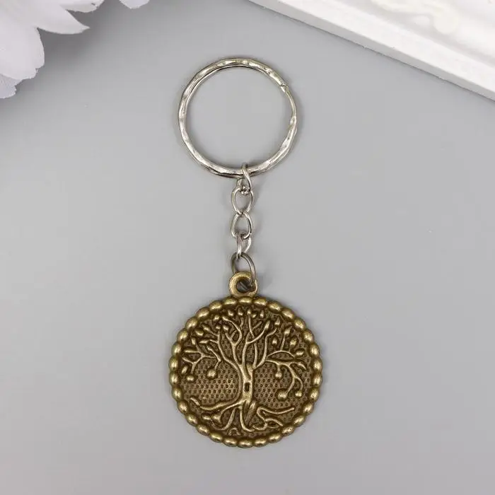 Брелок металл "Дерево с корнями в круге" 2,8х2,8 см