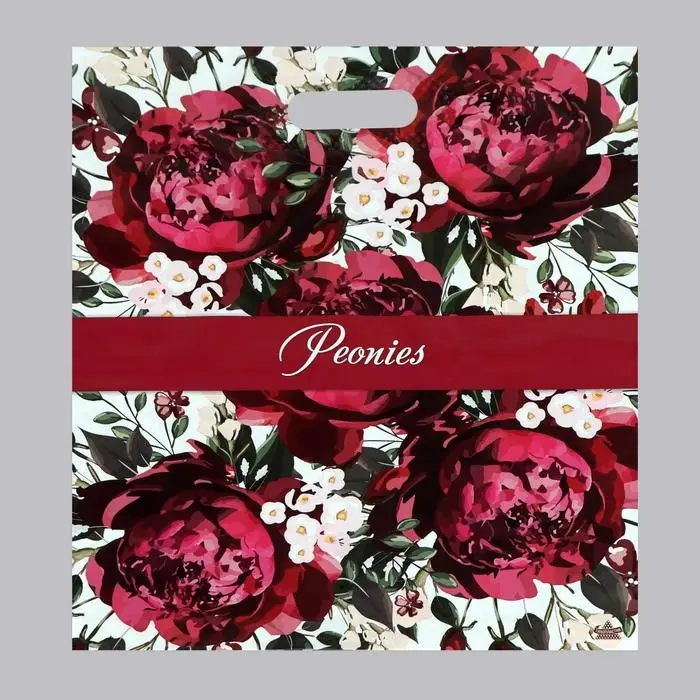 Пакет «Бордовые пионы», полиэтиленовый с вырубной ручкой, 60 мкм, 38×45 см