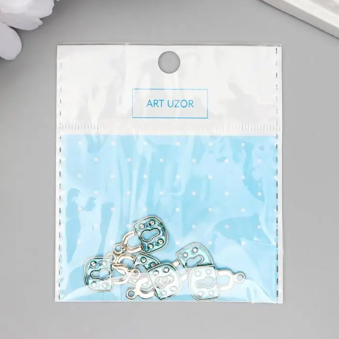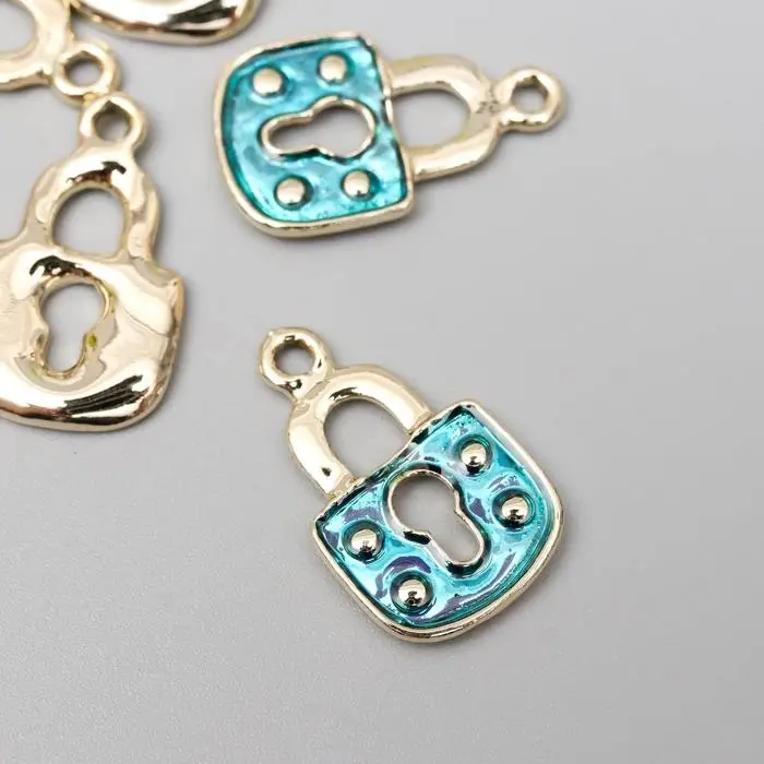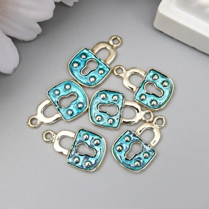 Декор для творчества металл "Голубой замочек" серебро, эмаль 1,6х1,1 см