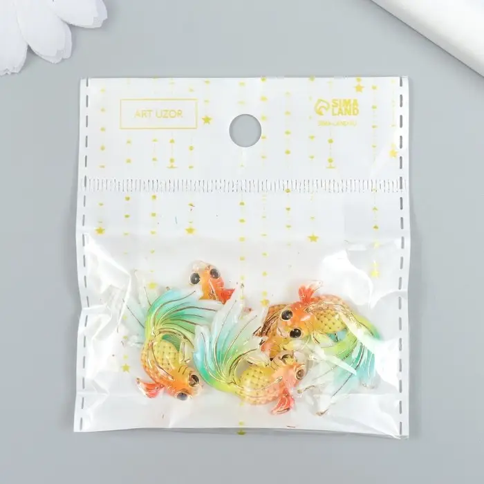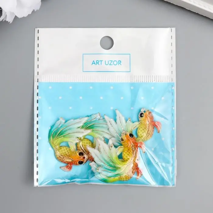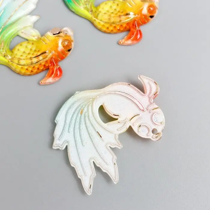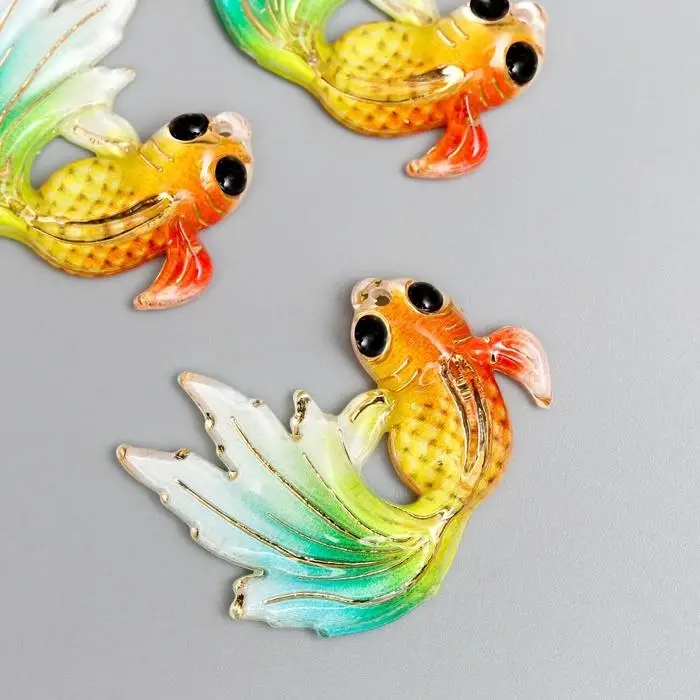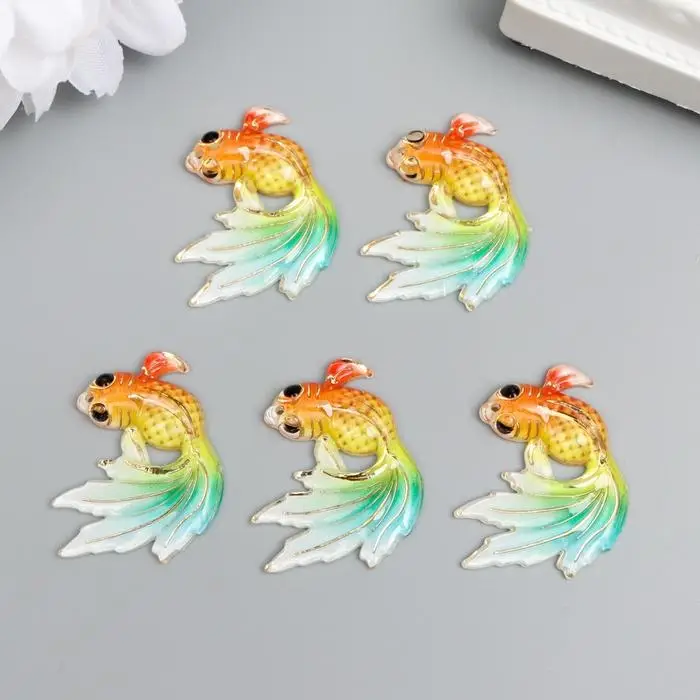 Декор для творчества пластик "Рыбка оранж с зелёно-голубым хвостом" с золотом 2,5х3 см