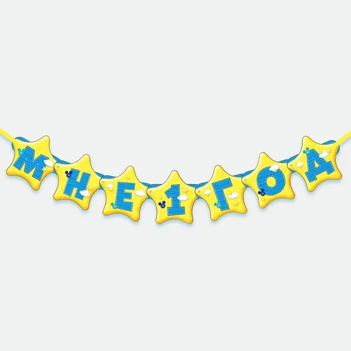 Гирлянда на люверсах «Мне 1 год», длина 140 см, Микки Маус