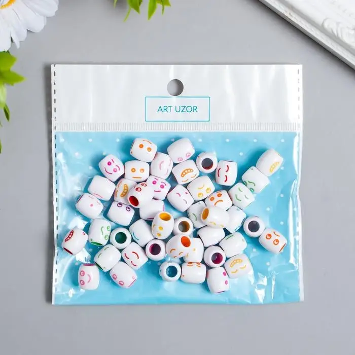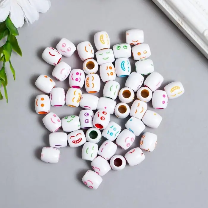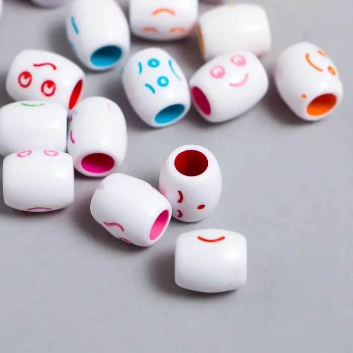 Бусины для творчества пластик "Цветной смайлик" бочонок набор 30 гр 1,2х1,1х1,1 см