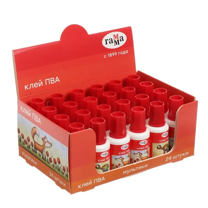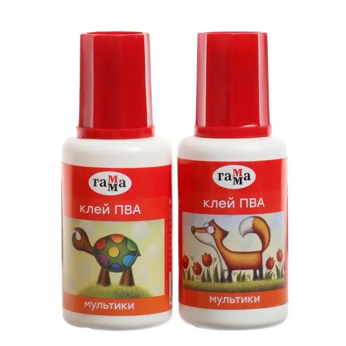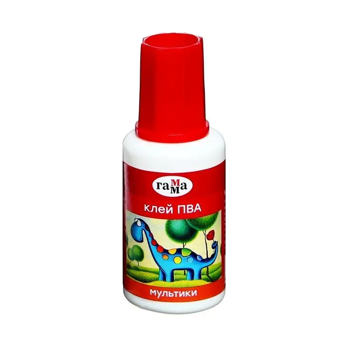 Клей ПВА ГАММА «Мультики» подходит для склеивания бумаги, фотобумаги, картона, текстиля.