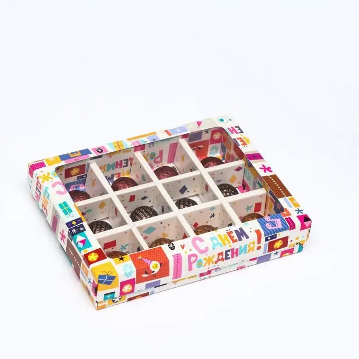 Коробка для конфет, 12 шт., «С днем рождения», 19×15×3.6 см