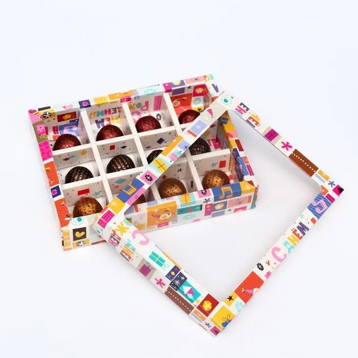 Коробка для 12 конфет, 19 х 15 х 3,5 см. Кондитерская упаковка