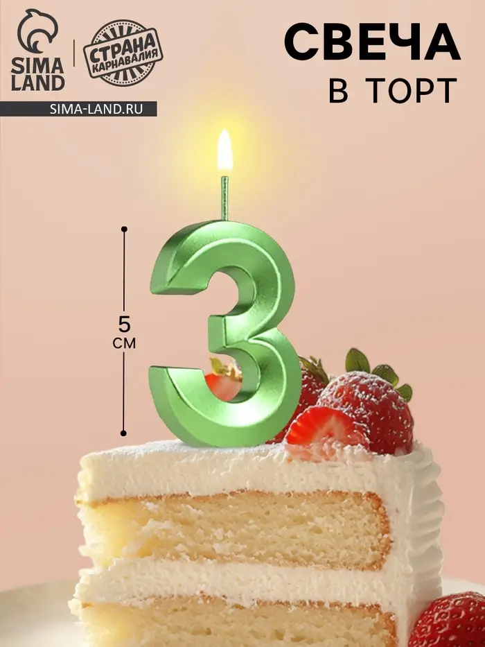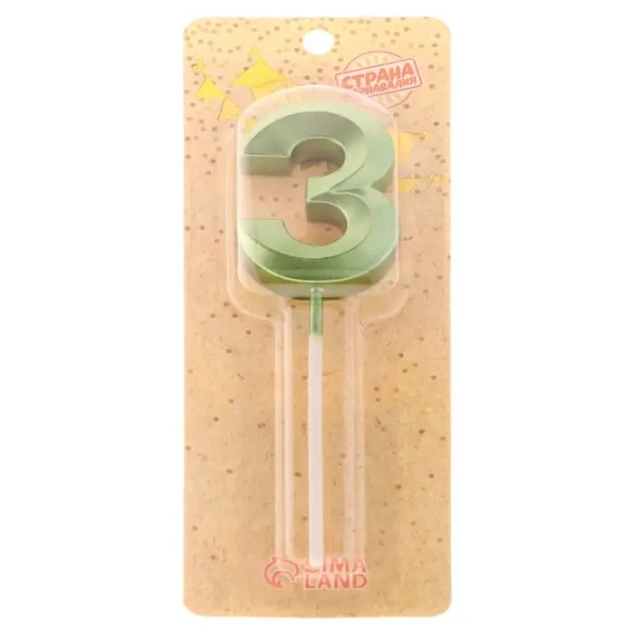 Свеча в торт на шпажке «Цифра 3», зеленая, 5 см