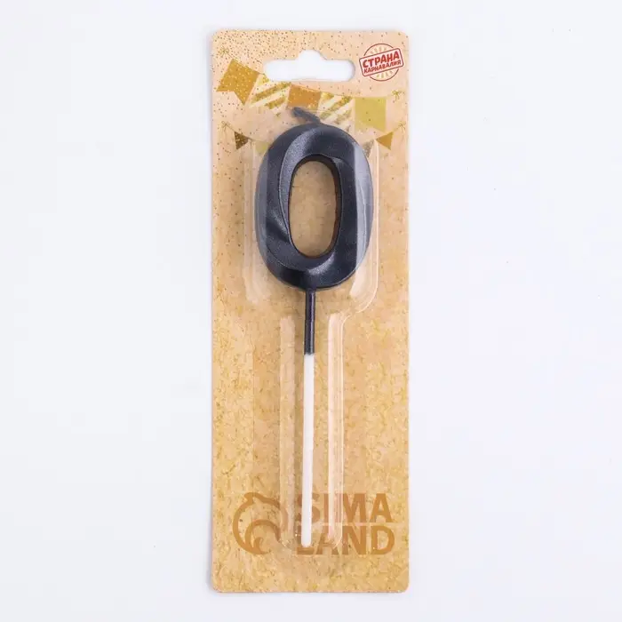 Свеча в торт на шпажке «Цифра 0», черная, 5 см