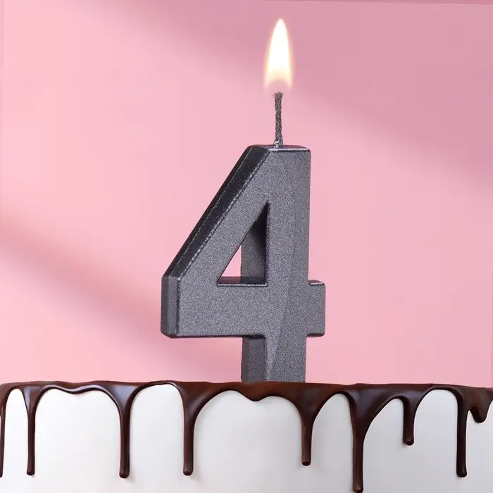 Свеча в торт на шпажке «Цифра 4», черная, 5 см