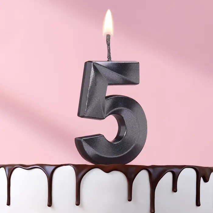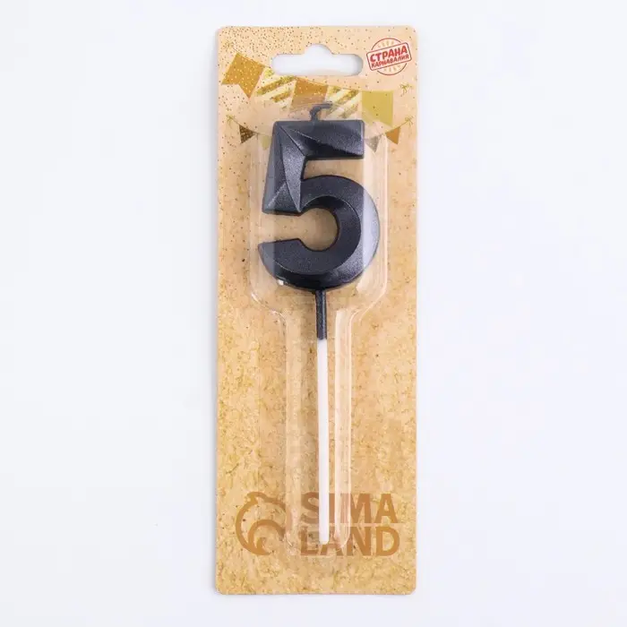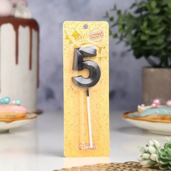Свеча в торт на шпажке «Цифра 5», черная, 5 см