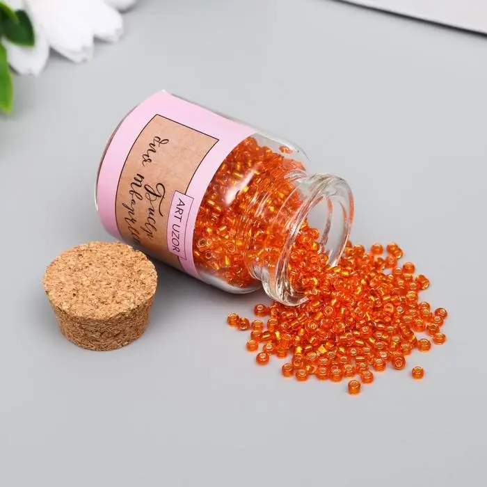 Бисер круглый 12/0 в бутылочке "Оранжевый" прозрачно-цветной 20 гр