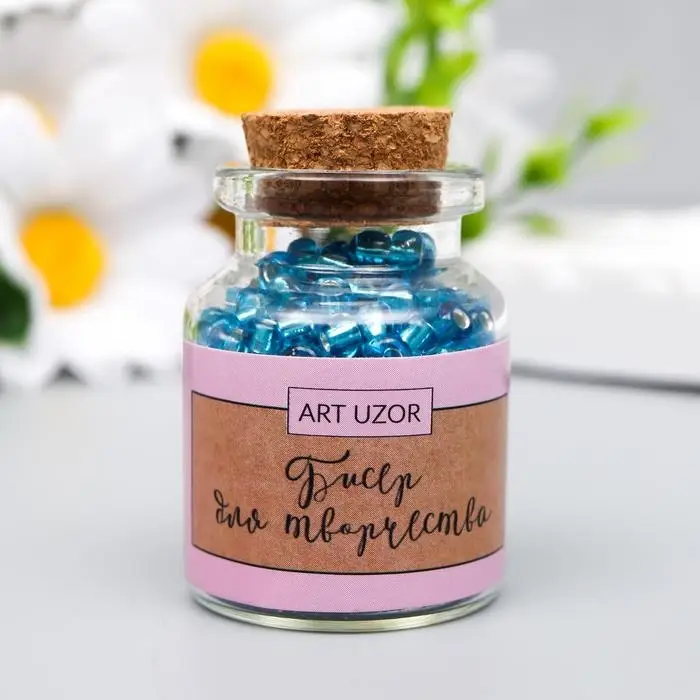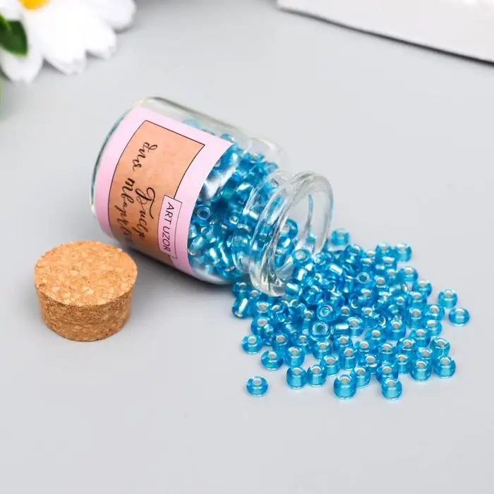 Бисер круглый 6/0 в бутылочке "Голубой" прозрачно-цветной 20 гр