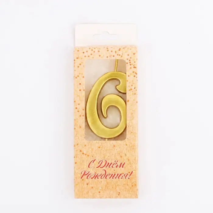 Свеча в торт «Цифра 6», 5.3 см, золотая