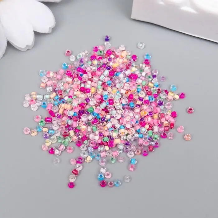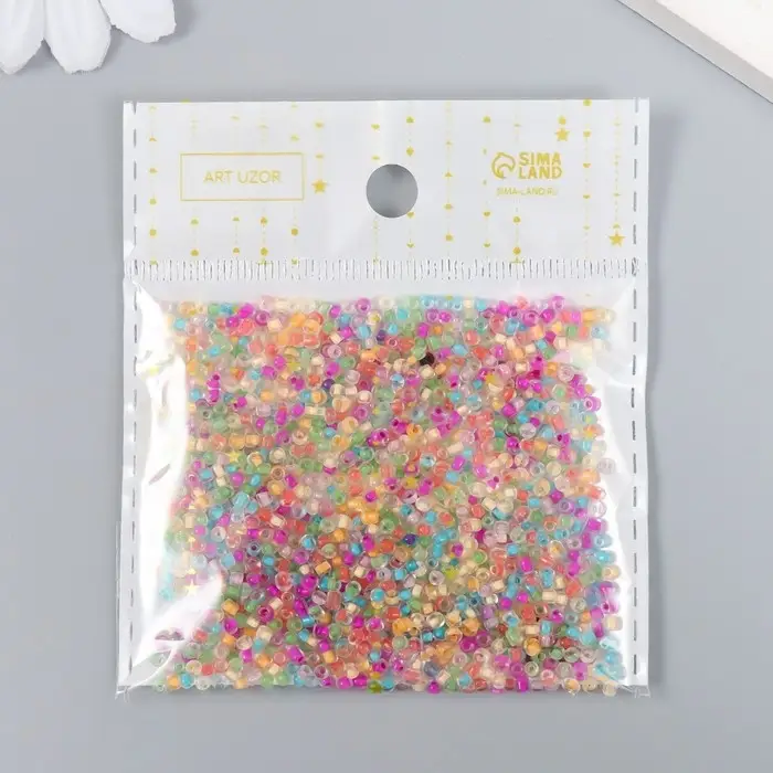 Бисер круглый размер 12/0 "Прозрачный с цветной серединкой" 20 гр