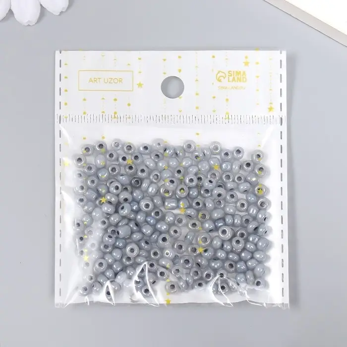 Бисер круглый размер 6/0 "Серый с перламутром" 20 гр