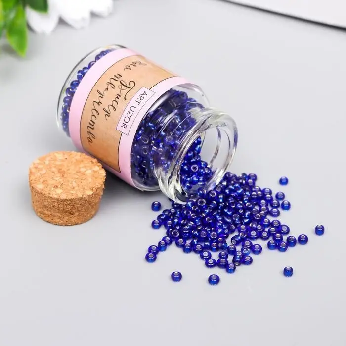 Бисер круглый 12/0 в бутылочке "Тёмно-синий" прозрачно-цветной 20 гр