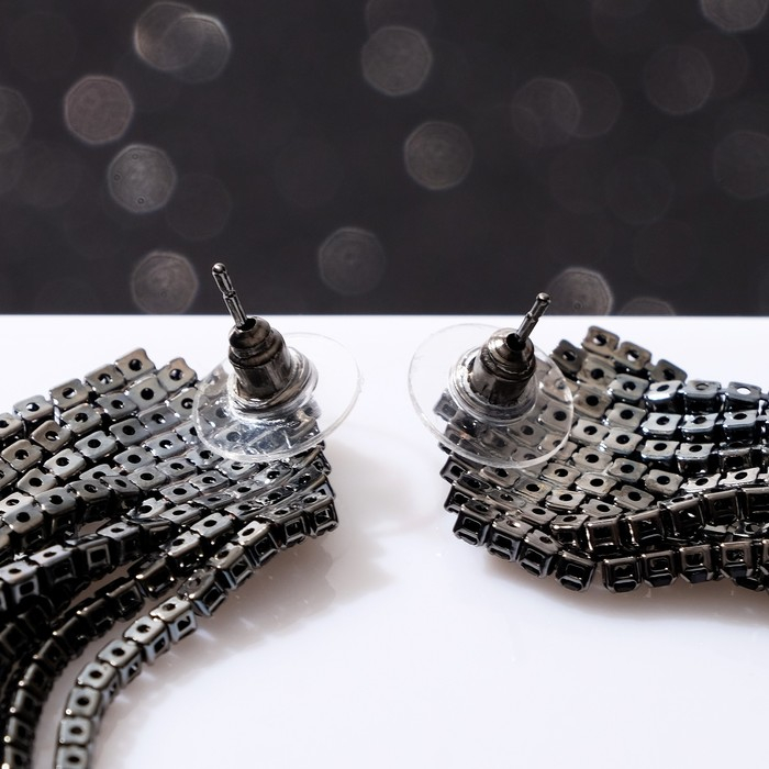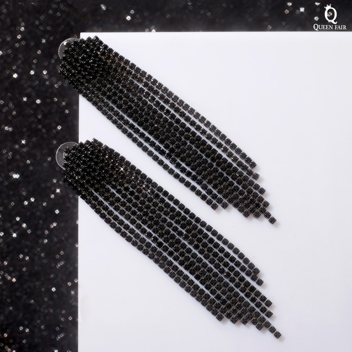Серьги висячие со стразами «Капли» дорожка, цвет чёрный в серебре, 6,2 см