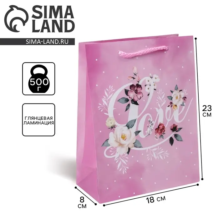 Пакет подарочный ламинированный, упаковка, Love, MS 18 х 23 х 8 см
