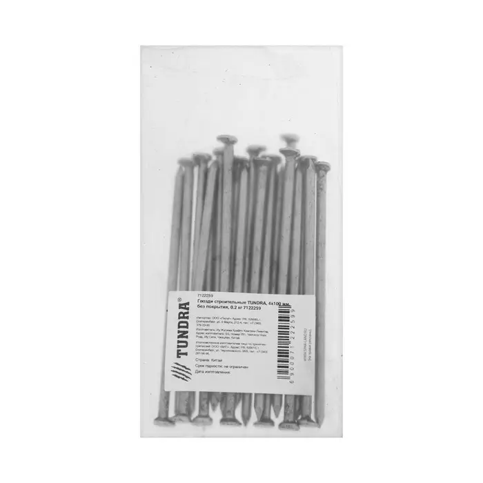 Гвозди ТУНДРА, строительные, ГОСТ 4028-63, без покрытия, 4×100 мм, фасовка 0.2 кг
