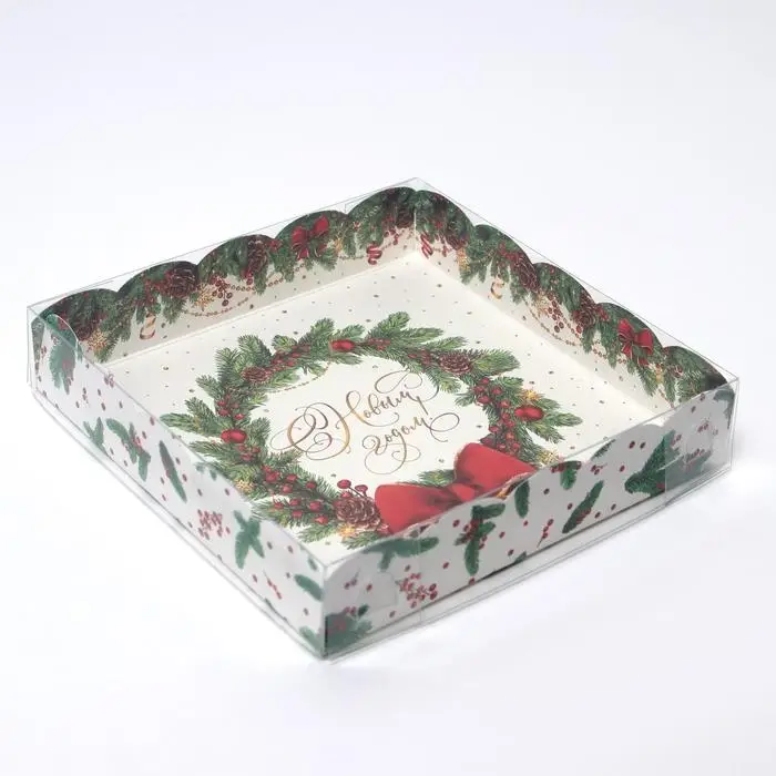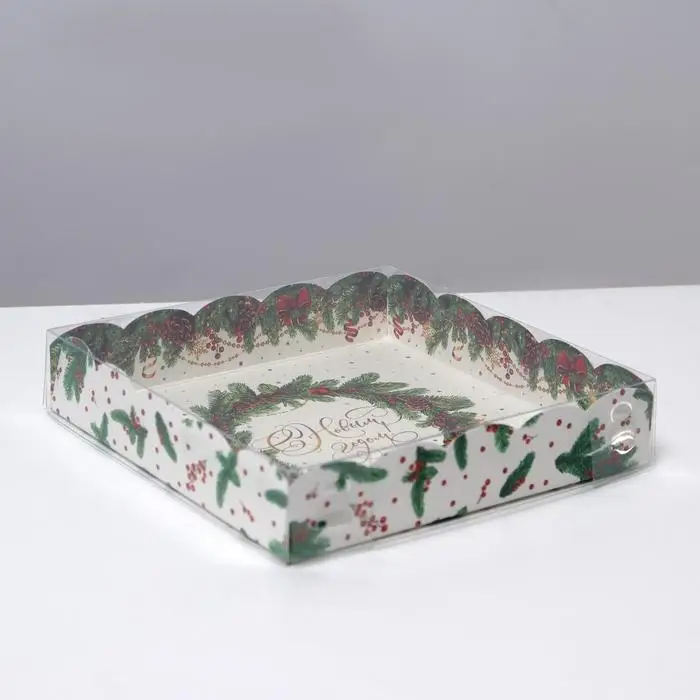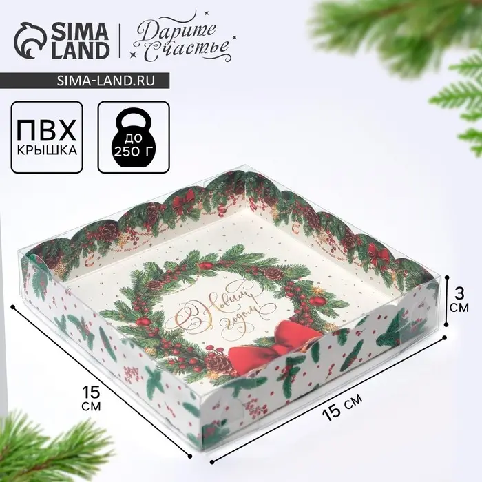 Коробка для кондитерских изделий с пластиковой крышкой «Бант», 15 х 15 х 3 см
