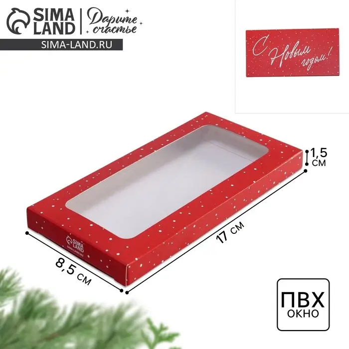 Коробка для шоколада «С новым годом», с окном, 17 х 8.5 х 1.5 см