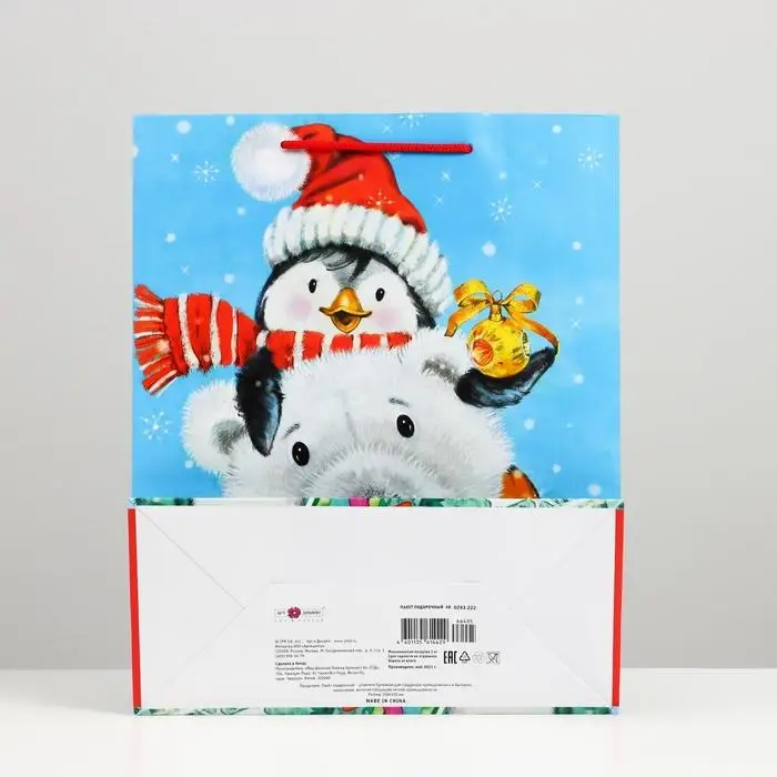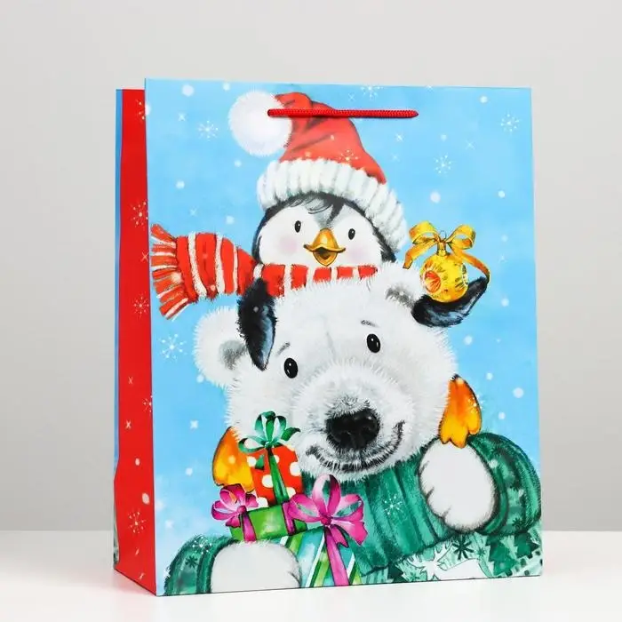 Пакет подарочный «Мишка и пингвин», 26×32×12 см