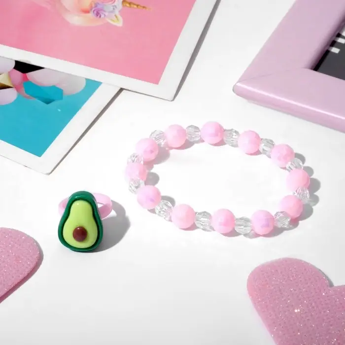 Набор детский «Выбражулька» 2 предмета: кольцо, браслет, авокадо, цветной