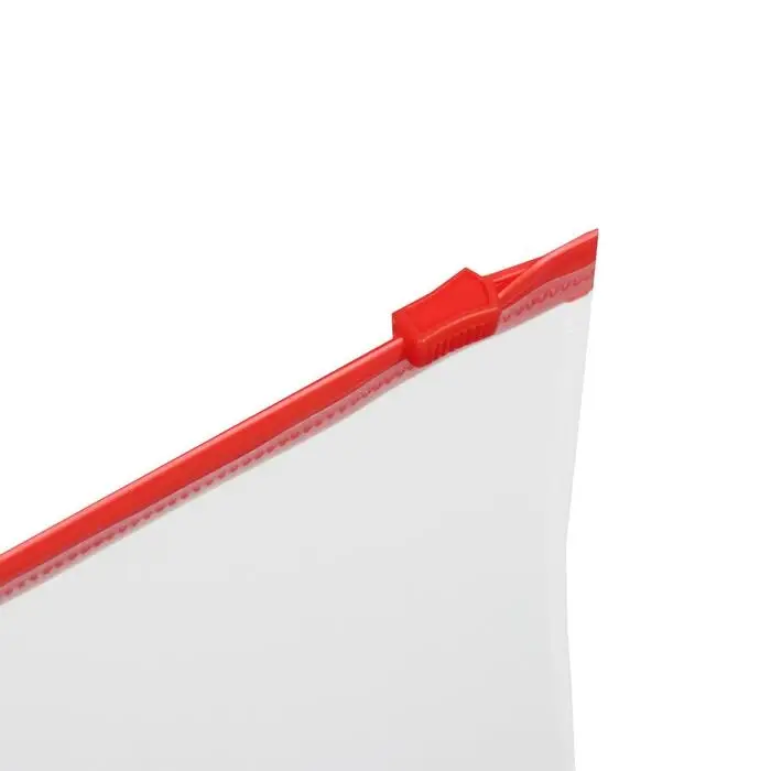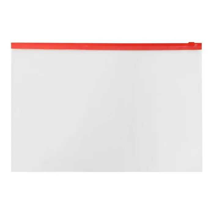 Изготовлена из прочного прозрачного пластика толщиной 150 мкм с гладкой фактурой. Формат А4 (333х230 мм). Герметичная застежка-зиплок защищает документы от механических повреждений, а также пыли и влаги. Цвет молнии – красный.