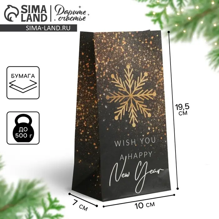 Пакет без ручек «Золото», 10 х 19,5 х 7 см