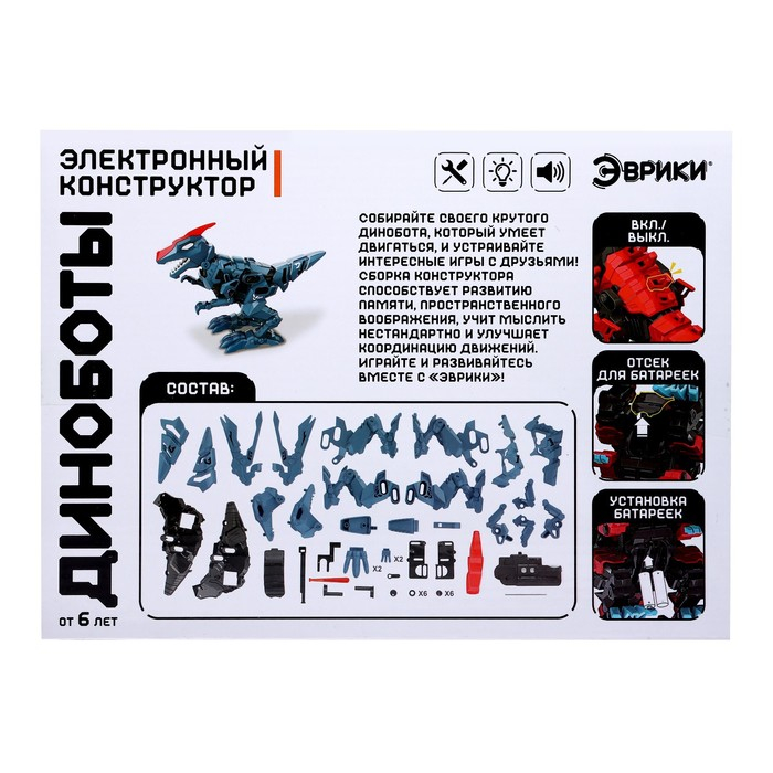 С электронным конструктором ребёнок соберёт могучего и опасного динозавра и с удовольствием поиграет с ним. Динобот умеет ходить и издавать звуки.