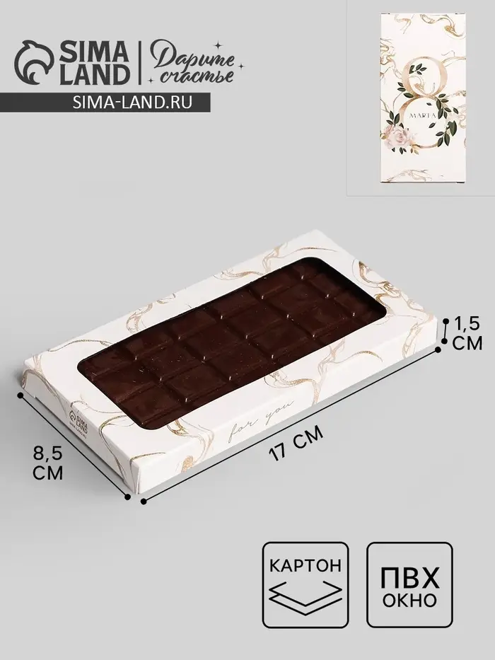 Коробка для шоколада, кондитерская упаковка, «8 Марта», с окном, 17.3 х 8.8 х 1.5 см