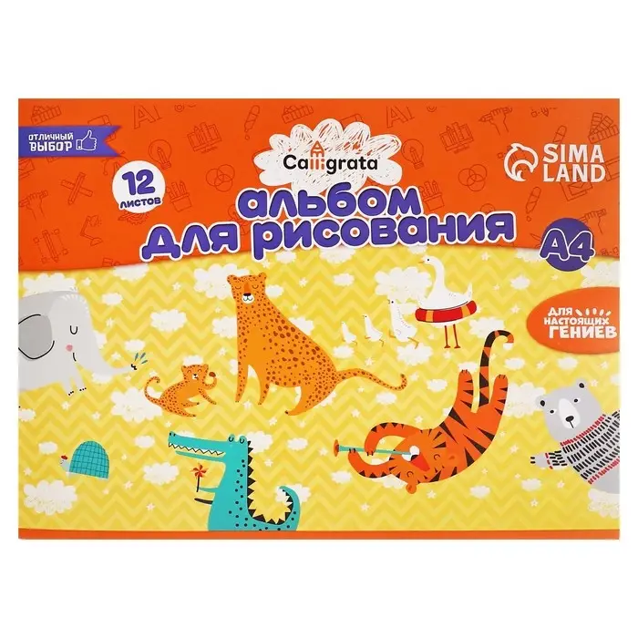 Альбом для рисования А4, 12 листов на скрепке Calligrata, обложка мелованный картон, внутренний блок офсет 100 г/м²