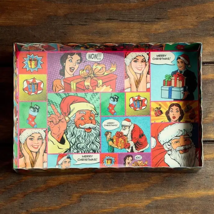 Коробочка для печенья "Pop - art новогодний сюрприз", 22×15×3 см