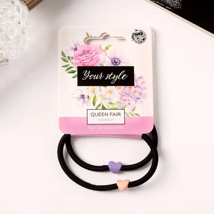 Резинки для волос «Анет», набор 2 шт., сердце, 5 см, МИКС