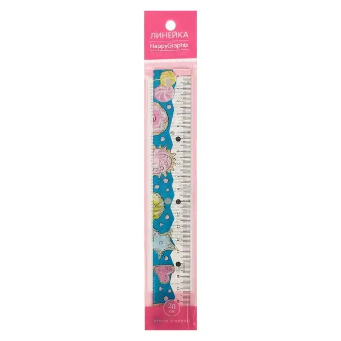 Линейка 20 см HappyGraphix "Сладкое настроение", с антискользящими вставками