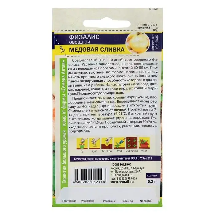 Семена Физалис "Медовая Сливка", Сем. Алт, ц/п, 0,2 г
